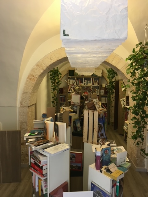 R. Vero, durante il lock down non mi sono mai fermato perché abbiamo lavorato molto con la bottega … in famiglia non eravamo del settore, ci siamo buttati e ho fatto buttare anche loro. Se ci pensi la bottega e la piccola libreria sono due attività da un punto di vista commerciale in via di estinzione a meno che non abbiano qualcosa di particolare. Le botteghe che vedo nelle grandi città sono aperte da stranieri, aperte 24 ore … hanno frigo -bar, carta igienica, merce per acquisti piccoli e rapidi. Sono attività che fanno fatica, ma meno se hai una famiglia. Nella bottega di mamma persone che vanno al supermercato passano una volta la settimana per un certo prodotto, per fare due chiacchiere, o un taglio fresco … la stessa cosa nella libreria, abbiamo libri particolari, è un ambiente green, c’è silenzio e una cura maniacale dei particolari del contesto e dei libri, potrei trasformarla in museo come la libreria di Harry Potter che ho visto in Portogallo, paghi 10 euro per entrare e ti regalano un libro … D. La libreria diventerà un museo? R. … è una idea. Magari tra cinquant’anni, non potrei chiuderla.